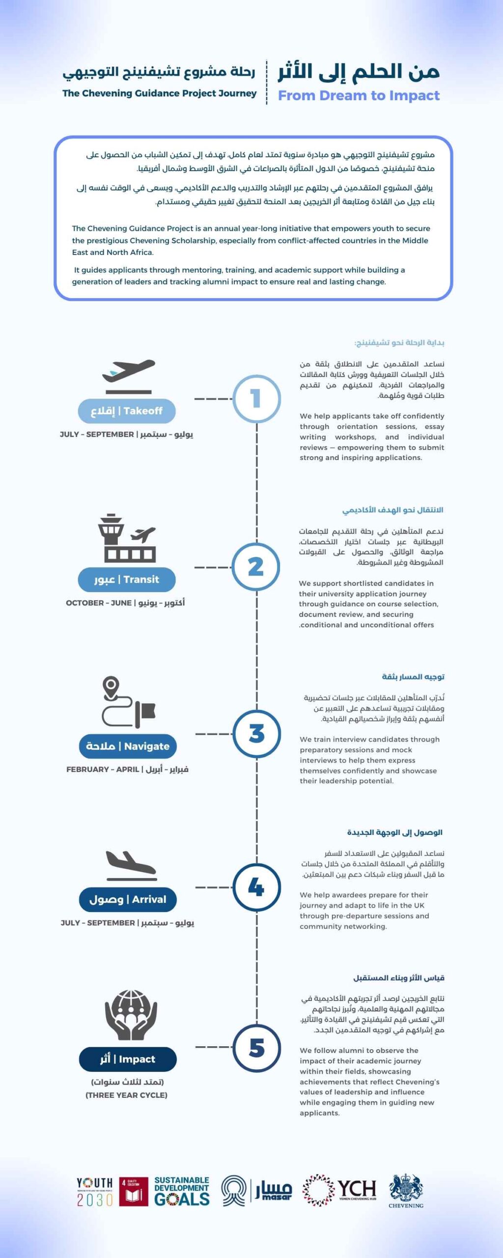 Here at the Chevening Guidance Project, delivered by the Yemen Chevening Hub, we truly believe in the potential of youth in the Arab world; especially those who come from conflict-affected areas and continue to thrive and strive for excellence no matter the circumstances.